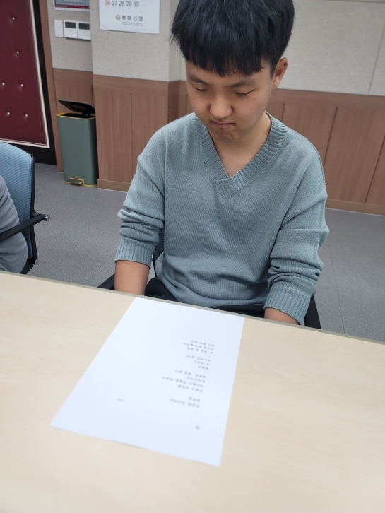 4월 7일 (화요일) 이용자 활동 모습 페이지 정보 작성자최고관리자 댓글 0건 조회 19회 작성일 26-04-10 11:17 본문 퍼즐활동 한글공부 숫자공부 점선따라그리기 미로찾기 시낭송 목록 이전글4월 7일 (화요일) 이용자 활동 모습 26.04.10 다음글4월 7일 (화요일) 이용자 활동 모습 26.04.10 댓글목록 댓글목록 등록된 댓글이 없습니다.